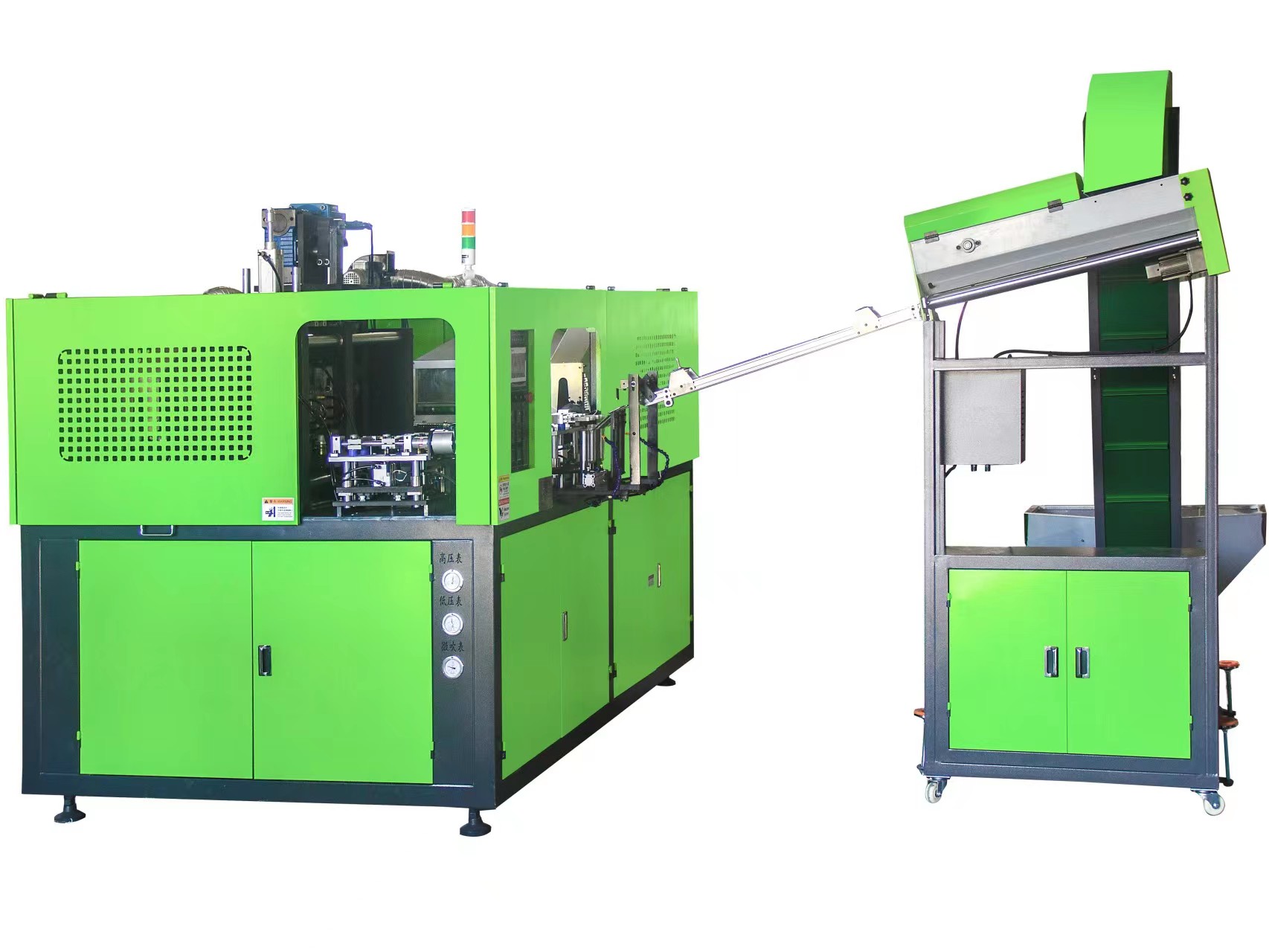 廣口一出二全自動吹瓶機主要用于PC、PS、PET廣口易拉罐吹瓶生產(chǎn)